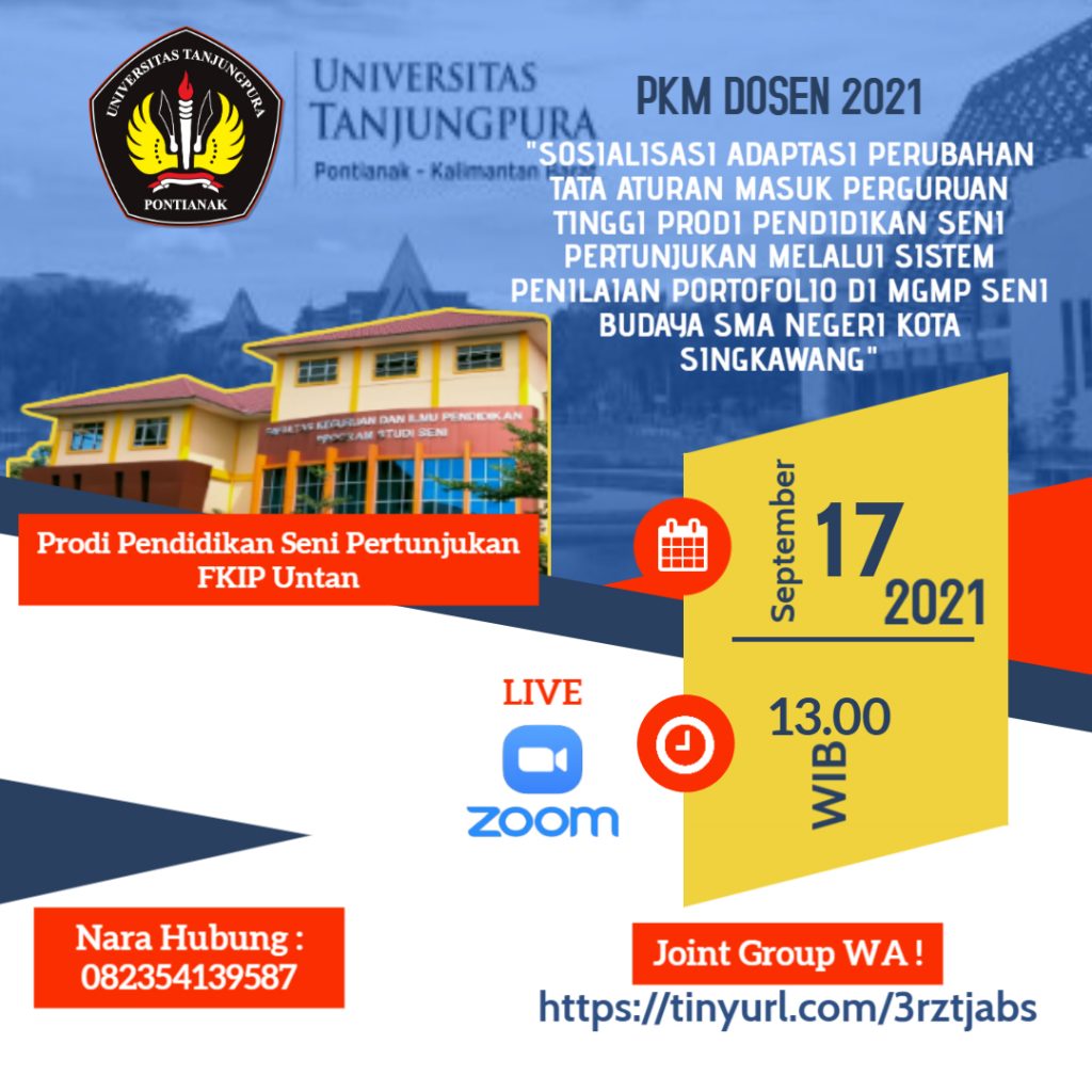 Prodi Pendidikan Seni Pertunjukan, Fakultas Keguruan dan Ilmu Pendidikan (FKIP) Universitas Tanjungpura (Untan) melaksanakan Sosialisasi Penilaian Portofolio Seni untuk SNPMB 2024 bagi SMA Sederajat di Kabupaten Kubu Raya Kegiatan ini dihadiri oleh guru dan siswa yang berasal dari berbagai SMA/ Read more
