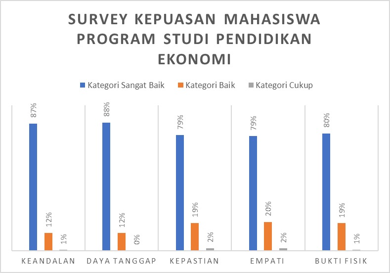 Untuk mengetahui tingkat kepuasan mahasiswa terhadap layanan akademik, dilakukan survei pada Program Studi Pendidikan Ekonomi dengan mengacu pada beberapa indikator utama, yaitu keandalan, daya tanggap, kepastian, empati, dan bukti fisik. Hasil survei ini kemudian dikategorikan ke dalam tiga tingkat penilaian, yaitu sangat baik, baik, dan cukup.